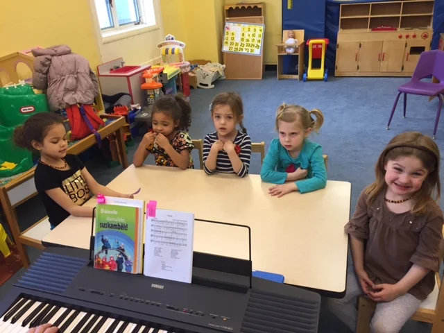 Today we not only read, wrote, sang and danced, but also played outside. Tomorrow we will celebrate February 16th with the whole Washington D.C. Lithuanian community. We rehearsed our poems, reviewed the lyrics of our songs and the steps of our dances for the performance.